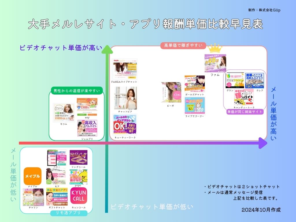 メルレのお仕事をする上で大切な、「メールの単価」の高い順番で大手メルレサイトを紹介します。